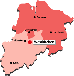 Übersichtskarte Niedersachsen, NRW mit dem Standort Westkirchen